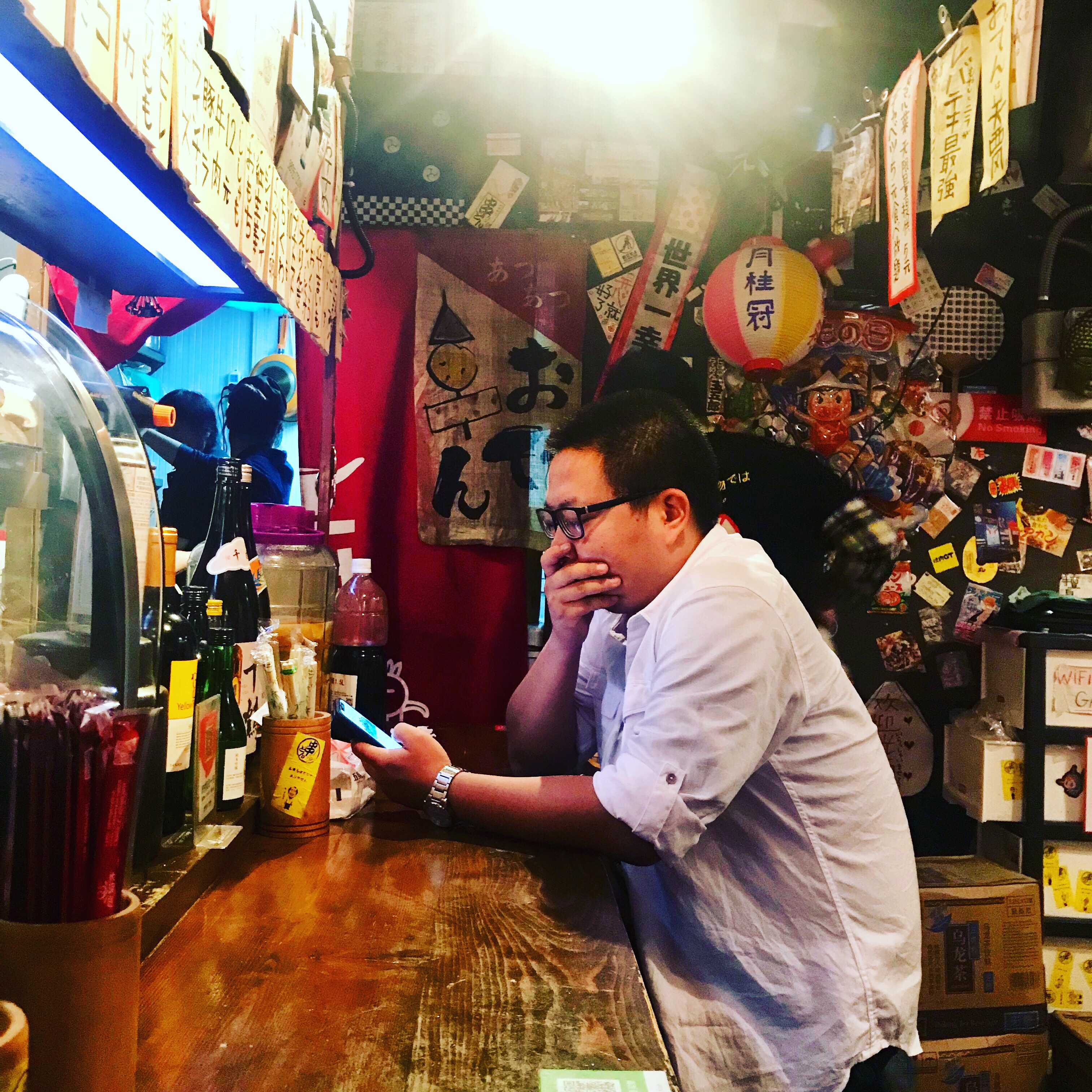 開市後人擠人的小酒肆,國語日語英語吵雜的氣氛。伸手從吧台窗口領食物。炸串、雞肉丸、豬勁肉、土手燒都做的很不錯。再整一壺「一滴入魂」,市井但不失情調,還是很喜歡的。